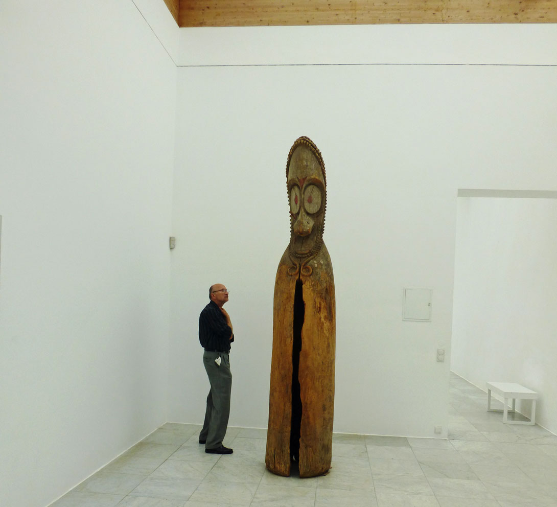 Hier steht Peter Wunderlich gerade an dem "Afrikaner - Mustaphas Traum", den Anatol durch Aushöhlung einer Riesenpappel geschaffen hat.