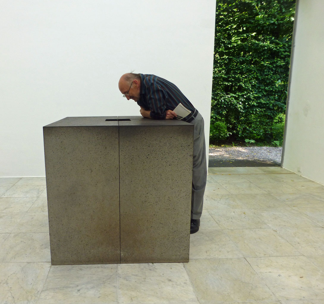 Unter Anleitung unseres Führers "begingen" wir anschließend die Skulptur und erkannten das geometrische und mathematische Baukonzept, das ihr zugrunde liegt. Peter Wunderlich demonstrierte es in einer Ecke und wurde immer schlanker.