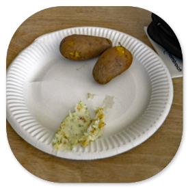 Flugs eilte er zum Buffet, holte sich zwei Pellkartoffeln und verzehrte sie trotz aller Eile mit Genuss - was Peter Wunderlich sofort fotografisch festhielt: