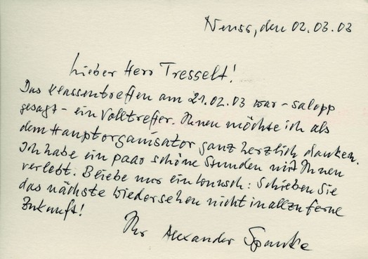 Aber was soll´s? Auch so musste es ein schönes Wiedersehen werden. Wir hatten unseren alten Klassenlehrer Alexander Spanke angeschrieben, und der hatte sein Kommen zugesagt.